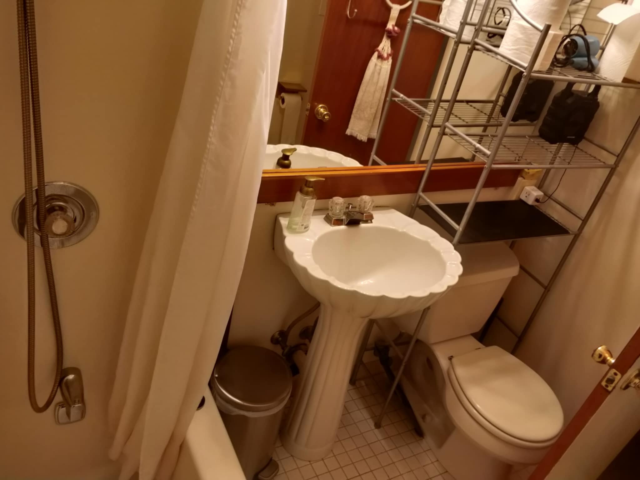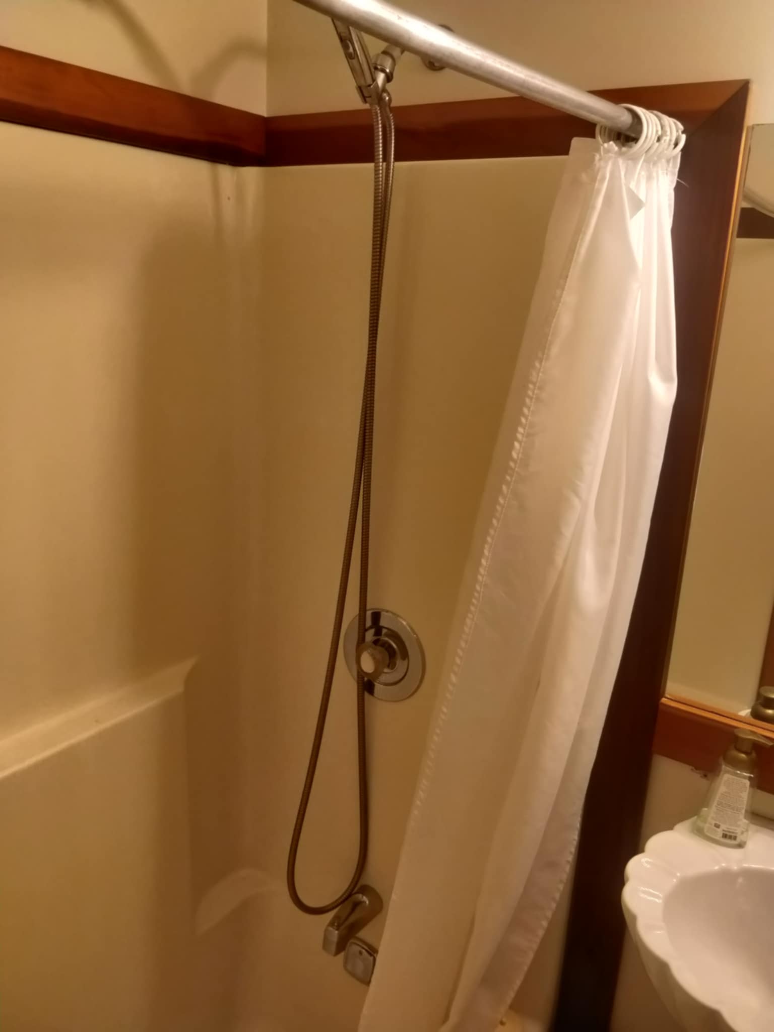 As you can verify from the pictures, it has a dresser, desk, chair, queen-sized bed with internal storage, large steel-reinforced bookcase, shower, bath, and toilet. The other option has a microwave, mini-fridge, and a 42-inch 4K TV with about $100/month of prepaid subscriptions (i.e., "apps").