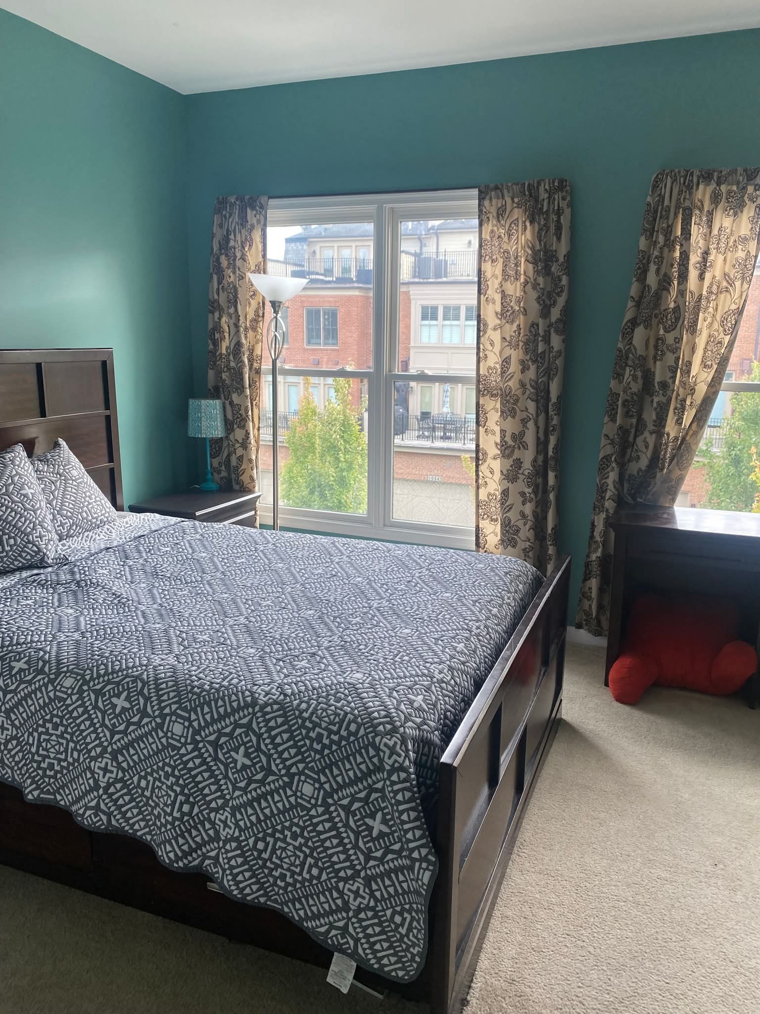 Cozy fully equipped private master bedroom with shared bath (depending on rental of other room on the same floor) and large closet space. Essentials provided. Carpeted space with large windows that allow for lots of sunlight. Access to Fios internet with a speed of 25 mbps. Full body mirror also provided and dresser/storage space as well as closet.