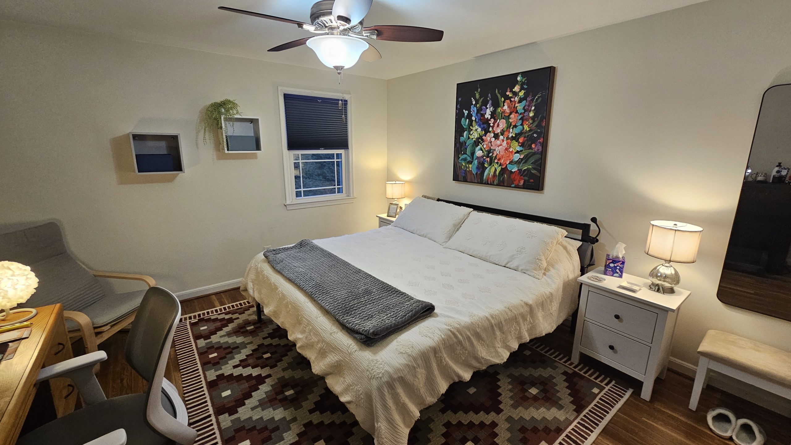We are pleased to offer a lovely and spacious bedroom with private access to a bath within walking distance from the NIH main campus in Bethesda.